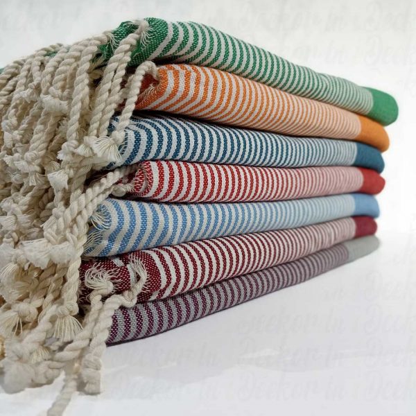 Nos serviettes, aussi appelées Fouta, en 100% coton, 100% tunisienne sont très douces et de très bonne qualité de tissage.